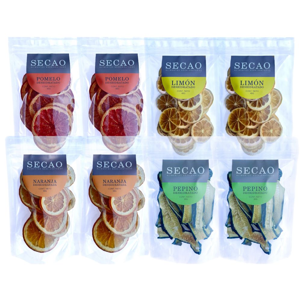 Si eres de los que prefiere tener de todo un poco en casa, este pack es para ti. Incluye 2 limones, 2 naranjas, 2 pomelos y 2 pepinos, para que nunca te falte el complemento ideal para tus tragos y preparaciones.